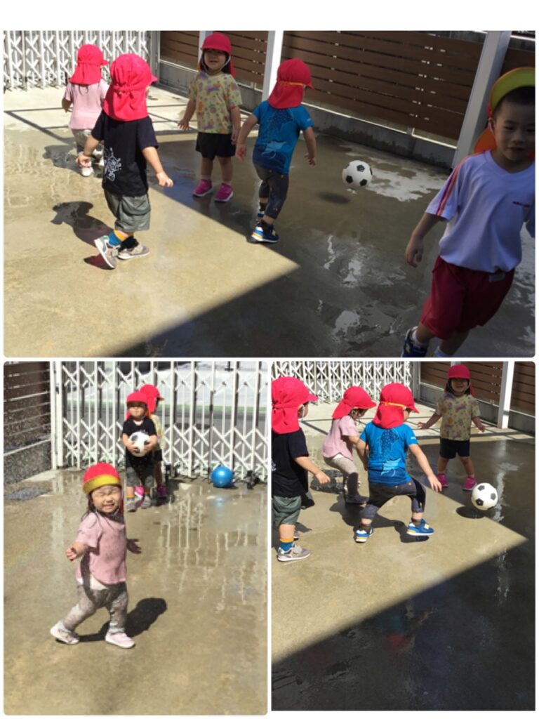 まだまだ暑いのでシャワーをだして子どもたちにかけると大はしゃぎ!
