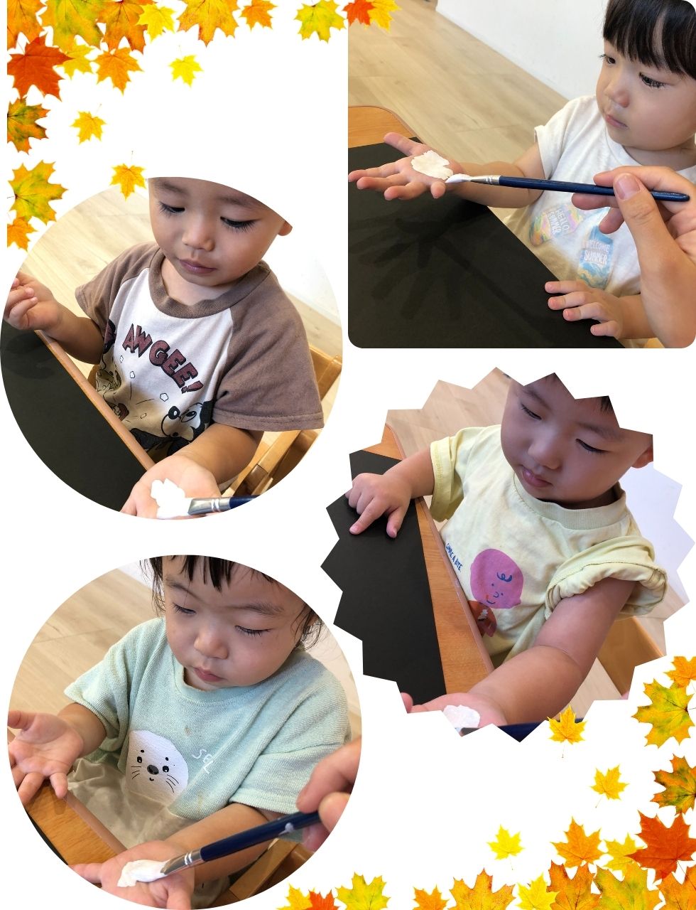 こんにちは、吉塚園です😊 今日はお部屋でそれぞれ自由遊びをして、秋の制作もしました。 手形で何ができるかな? 子ども達、今日も元気に楽しく過ごしています♪
