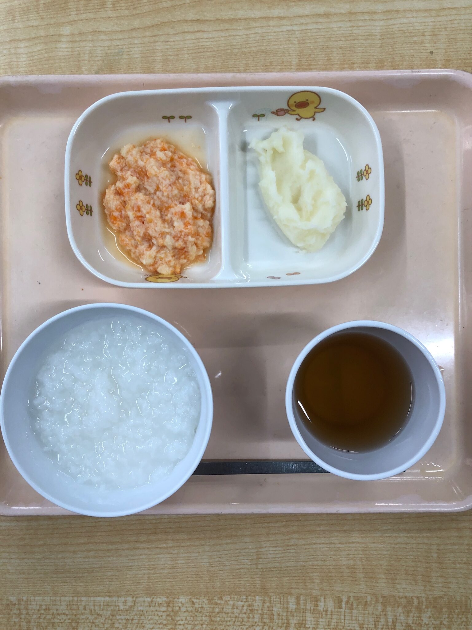 おかゆ、じゃが芋と玉葱のペースト、豆腐と人参のペースト