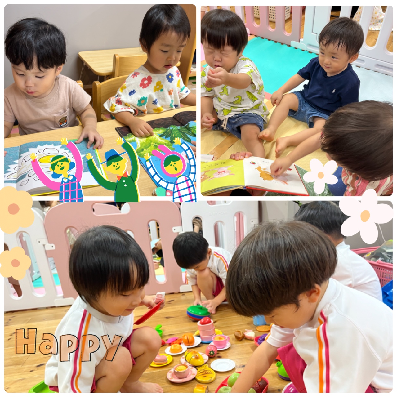 ひよこ組さん、りす組さん、ねずみ組さんは絵本を読んだり、レゴブロックで遊んだりしました。