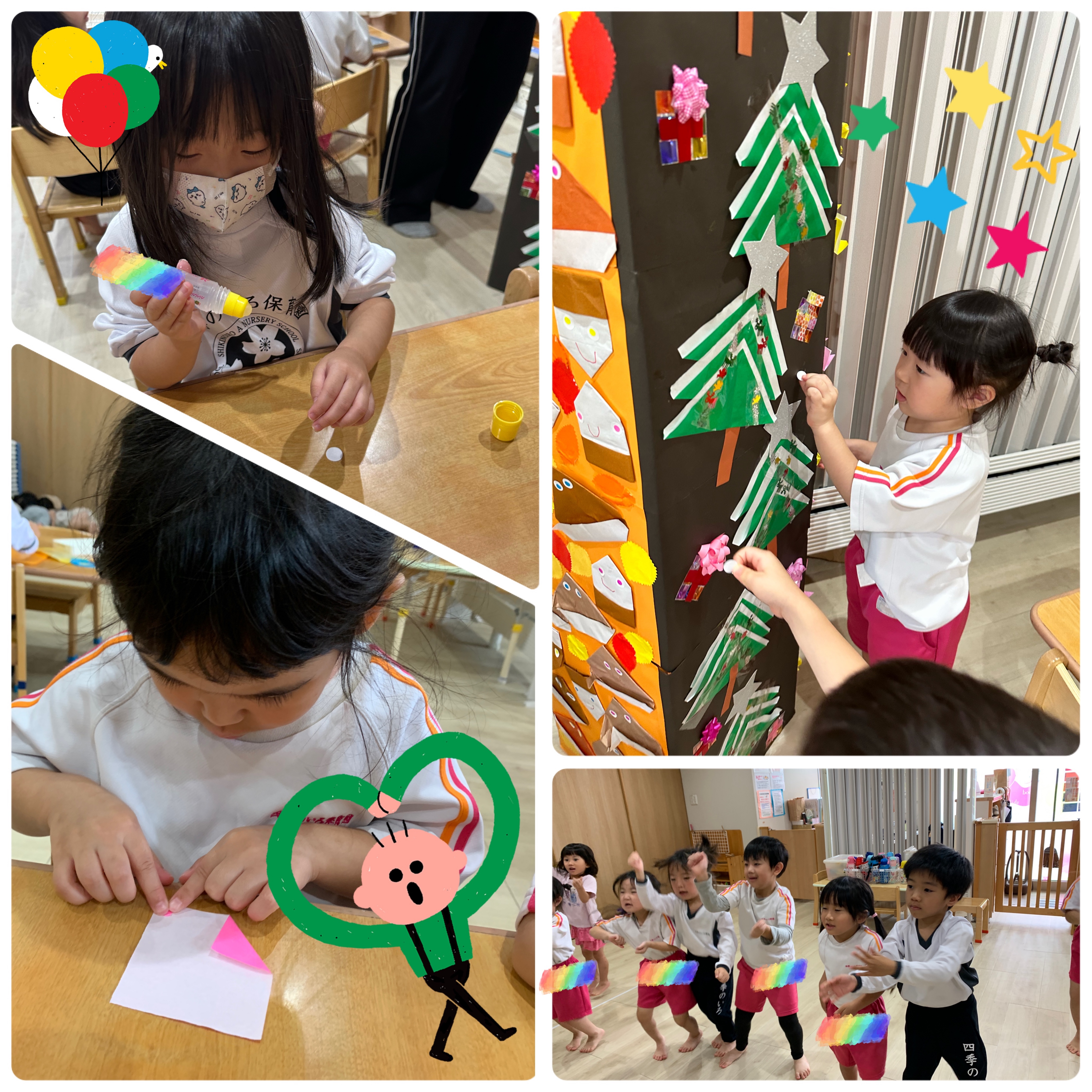 制作をしましたよ(*’ω’*)折り紙では、指先を器用に使って上手に折っていますね!