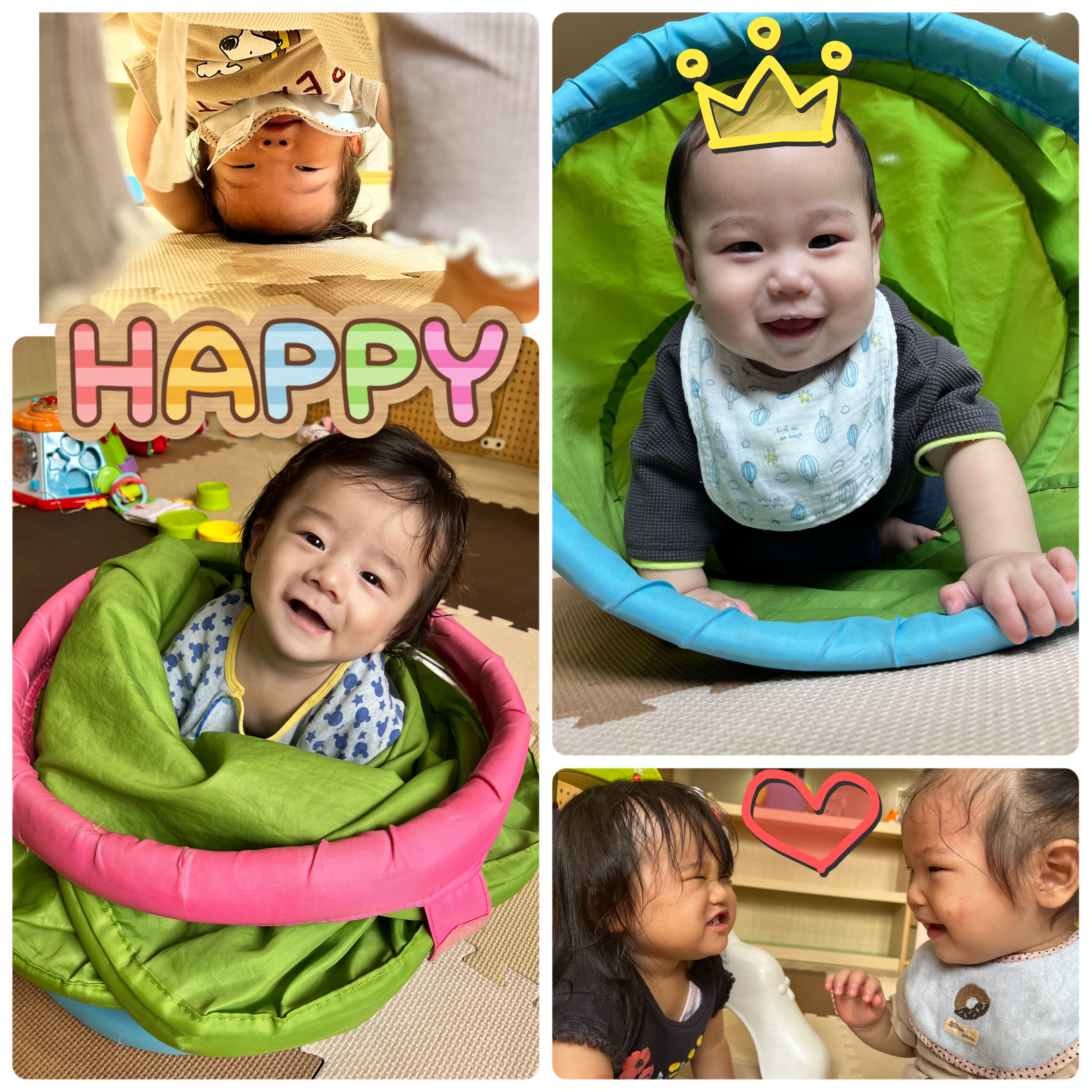 小さいクラスのお友達はトンネルやおもちゃで遊びましたよ♪