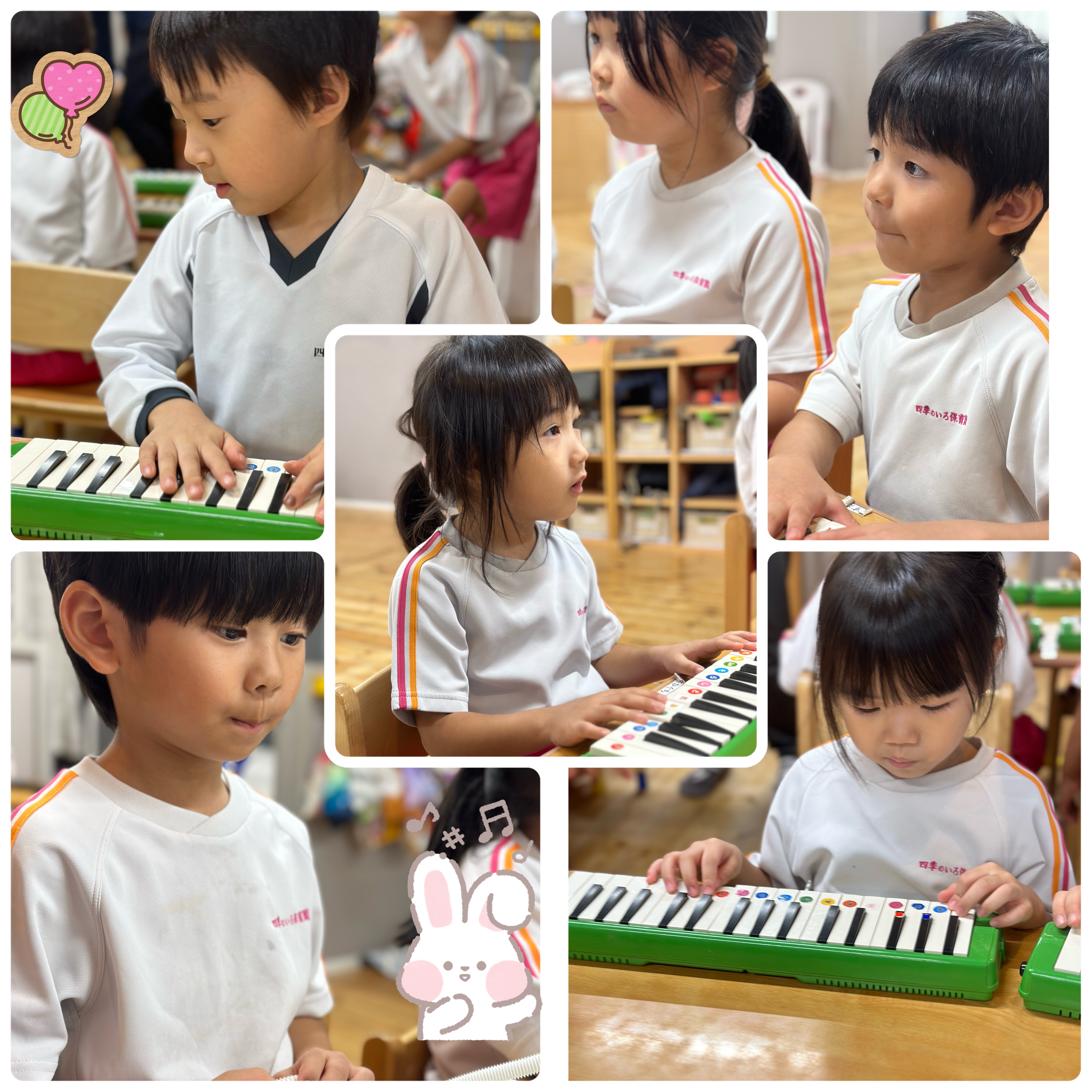 うさぎぐみ、ぱんだぐみ、ぞうぐみさんは音楽教室がありました。