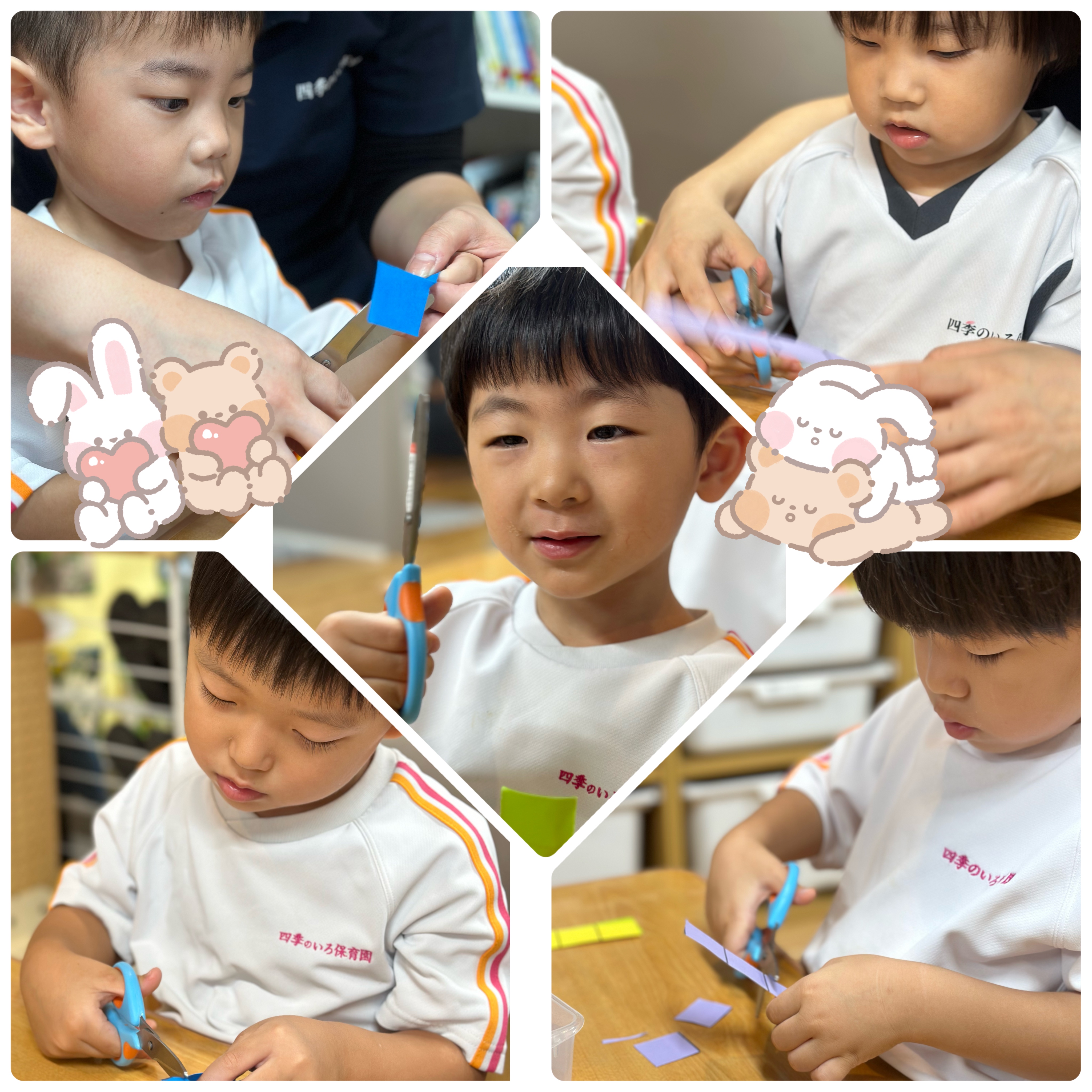 うさぎぐみさんはハサミの使い方も学びました。ハサミを使うときの注意事項をしっかりと聞いて、上手に制作していました。