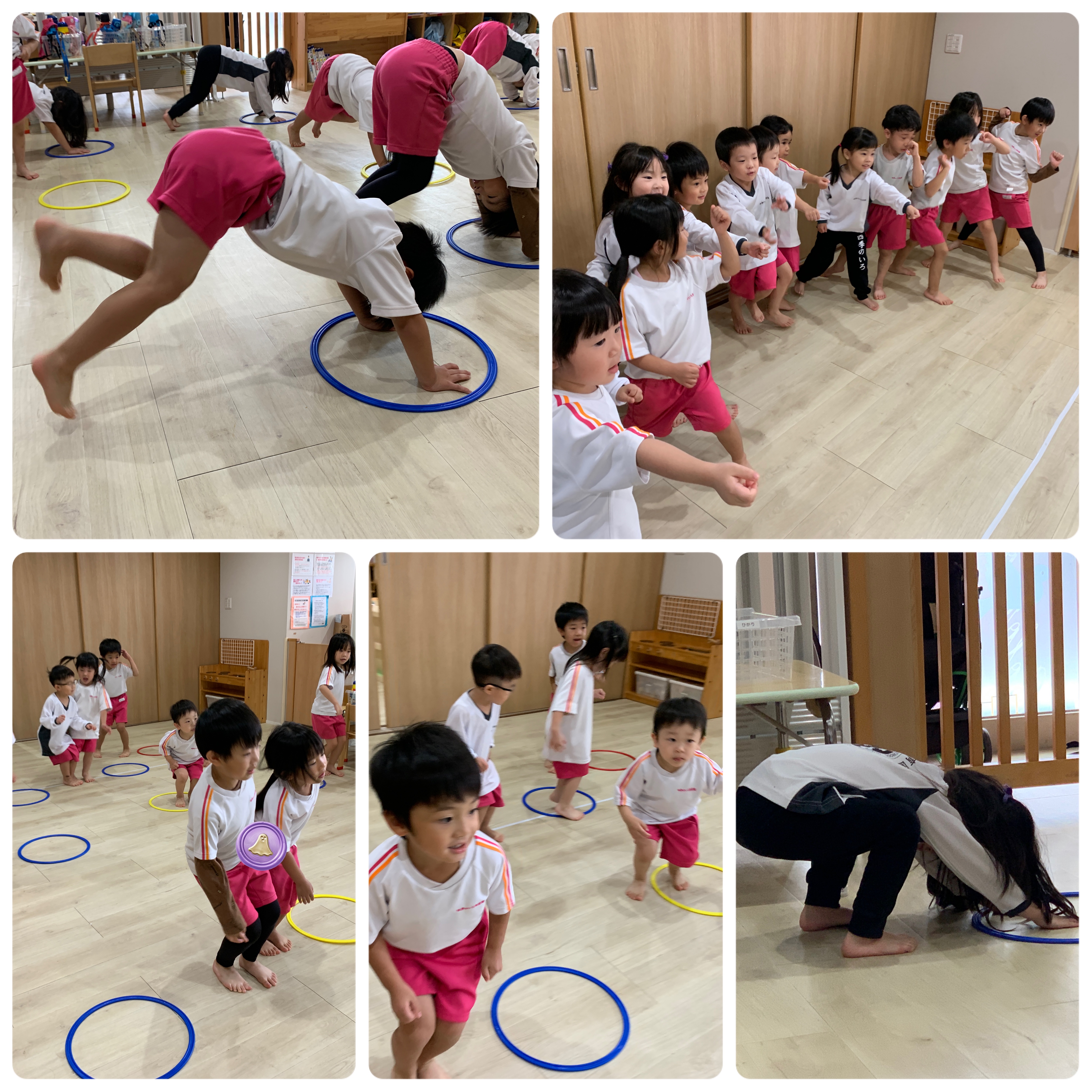 ハロウィン飾りで保育室に蜘蛛の人形があり、怖がりつつ蜘蛛から逃げるために全力疾走する場面も見られました。