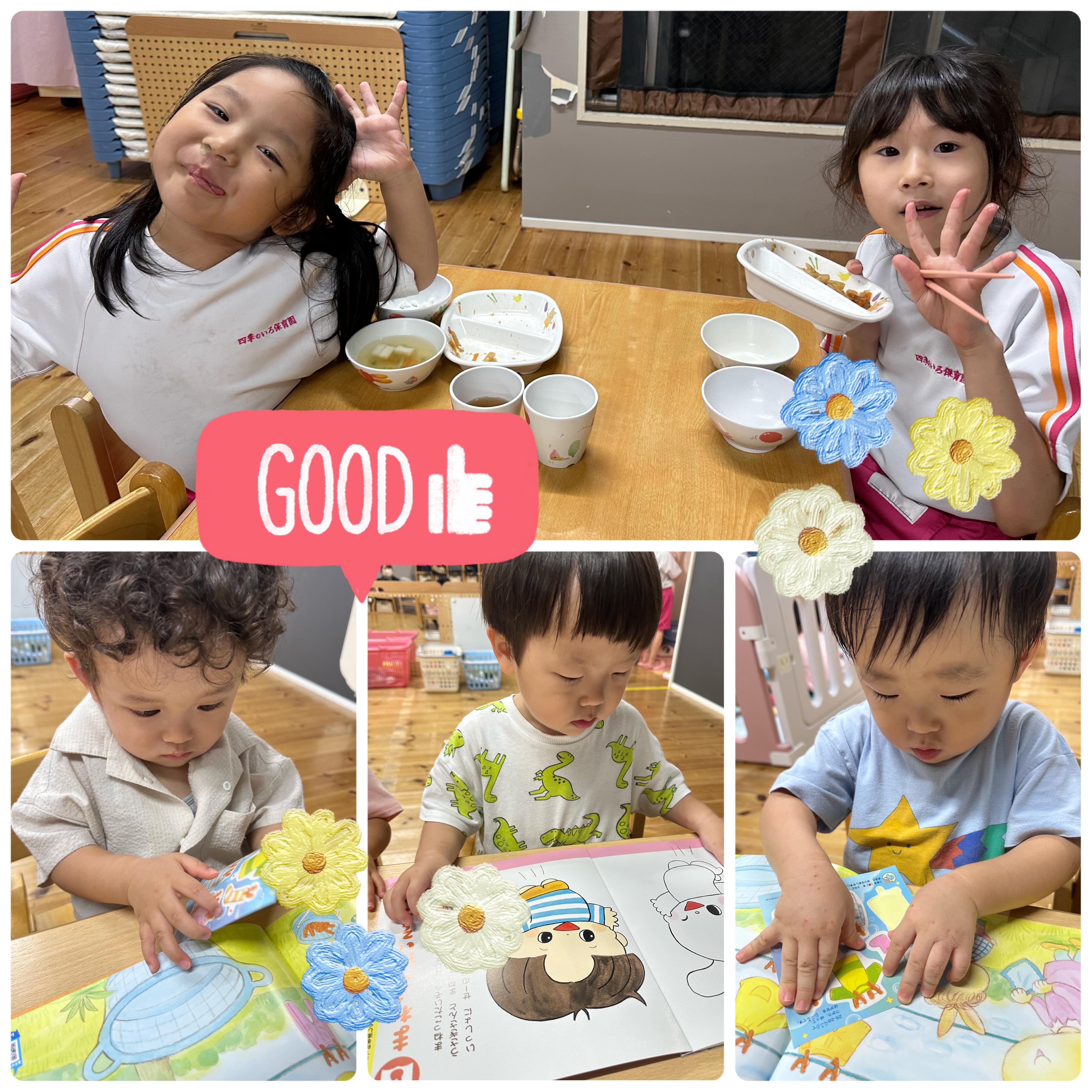 ひよこ組さん、りす組さん、ねずみ組さんは月刊絵本を読みました。