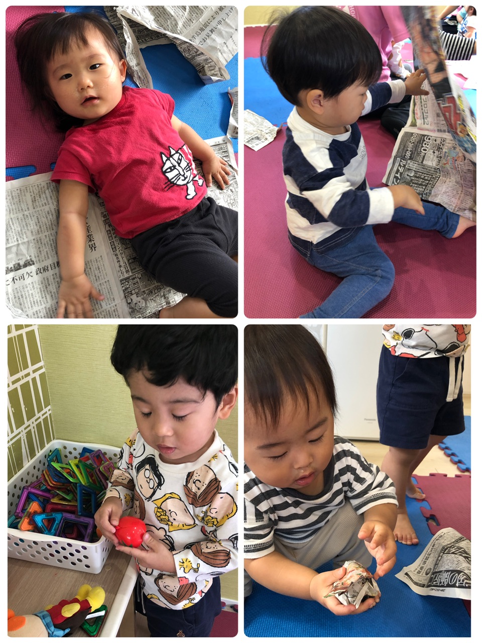 未満児さんは、新聞紙をビリビリわ😁