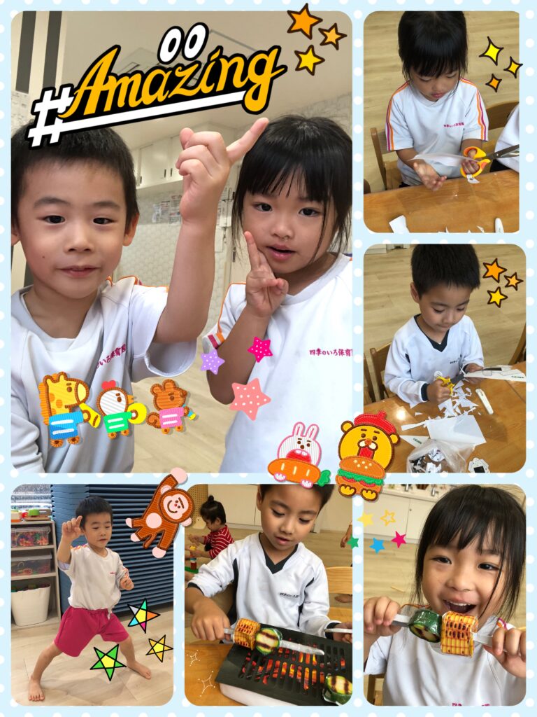 今日は、お外が雨だったのでお部屋でバーベキューをしました🌟