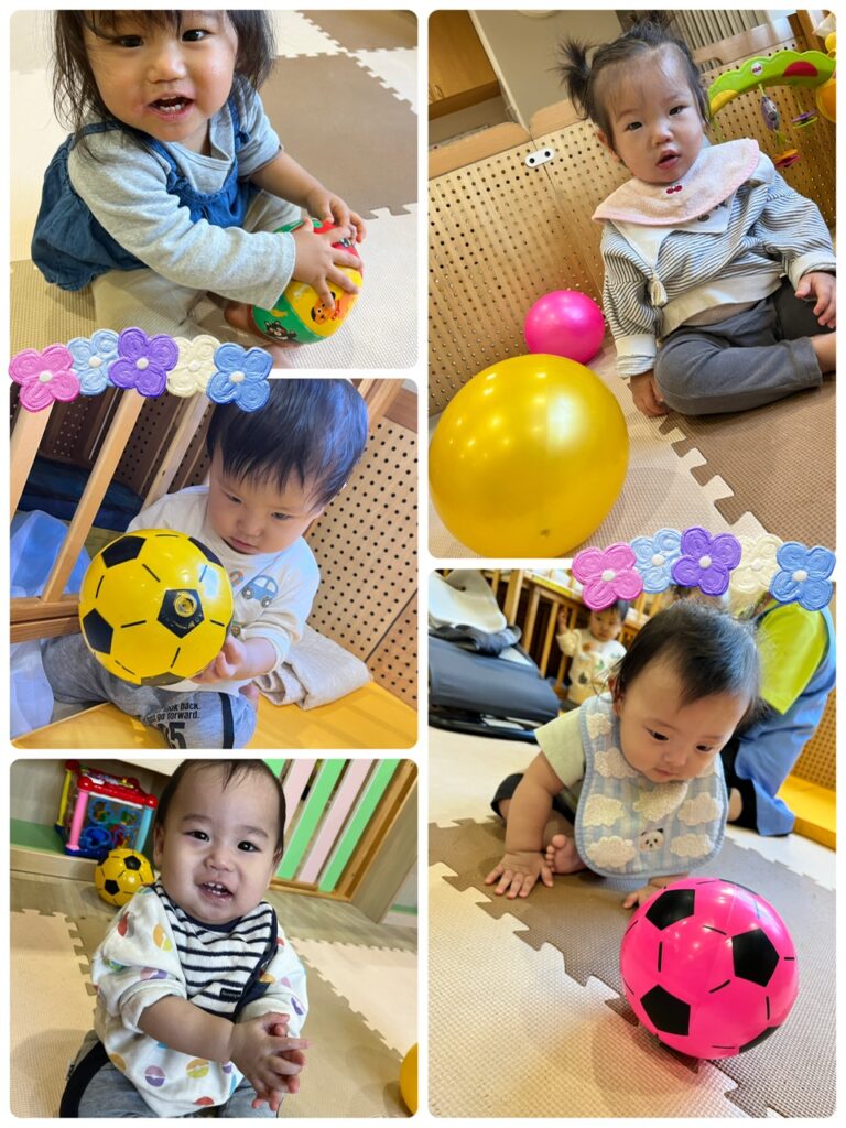 おひさま組さんはボール遊びをしました!投げてみたり、転がしてみたりして楽しそうに遊んでいましたよ★