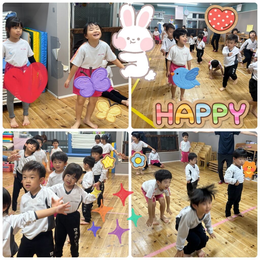 まずは朝の会で元気いっぱい身体を動かして体操をしました!
