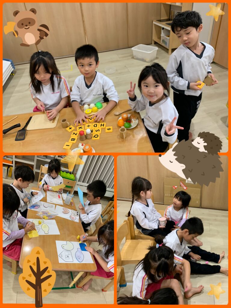 以上児さんは 、段ボールや椅子を使って映画館を作ったり、いろんなおもちゃを使っておままごとを楽しみました☆