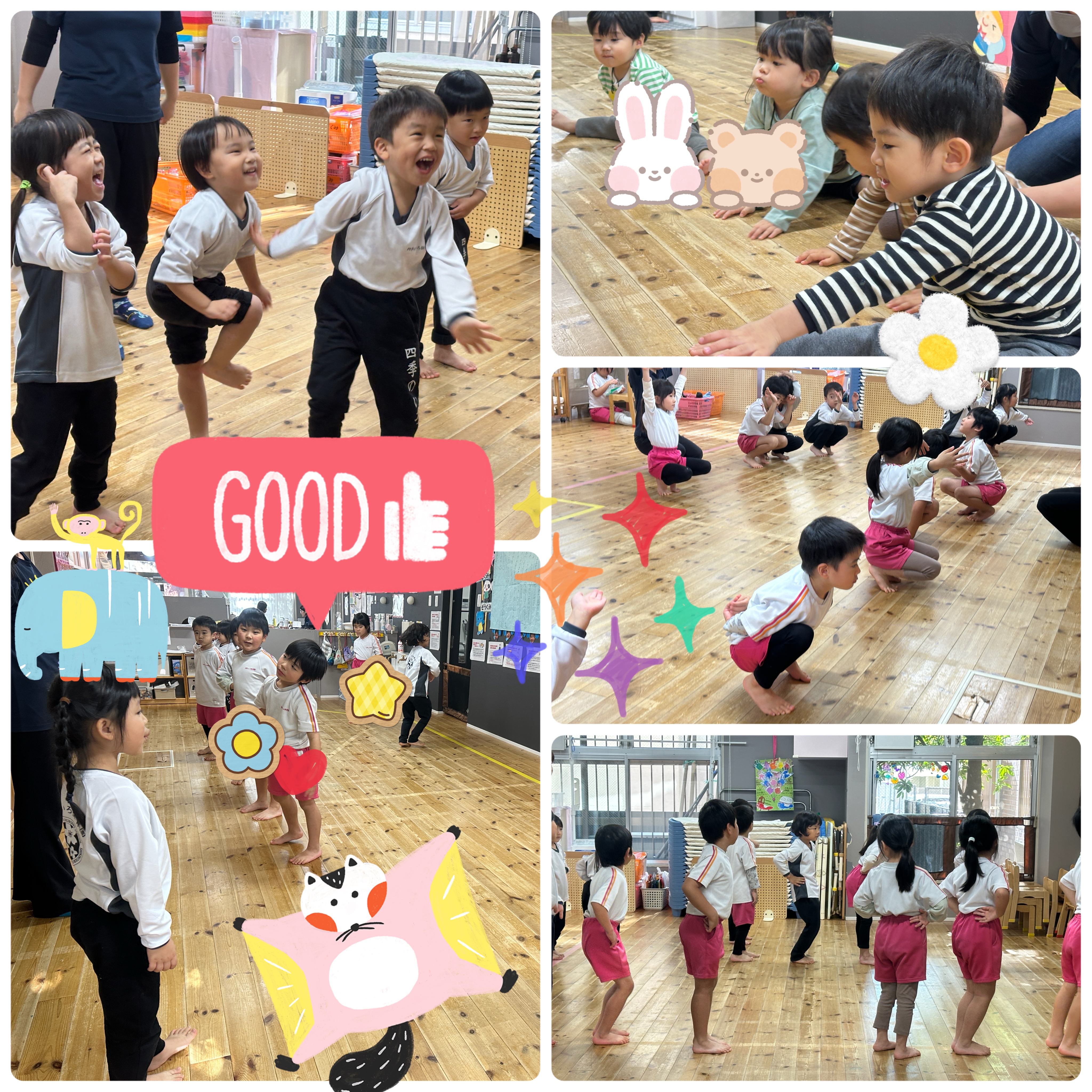 音楽が流れるとリズムに合わせてお友達と元気いっぱいジャンプをしたり、ポーズを決めたり、たくさん身体を動かしてとっても素敵な笑顔で楽しそうでした♪