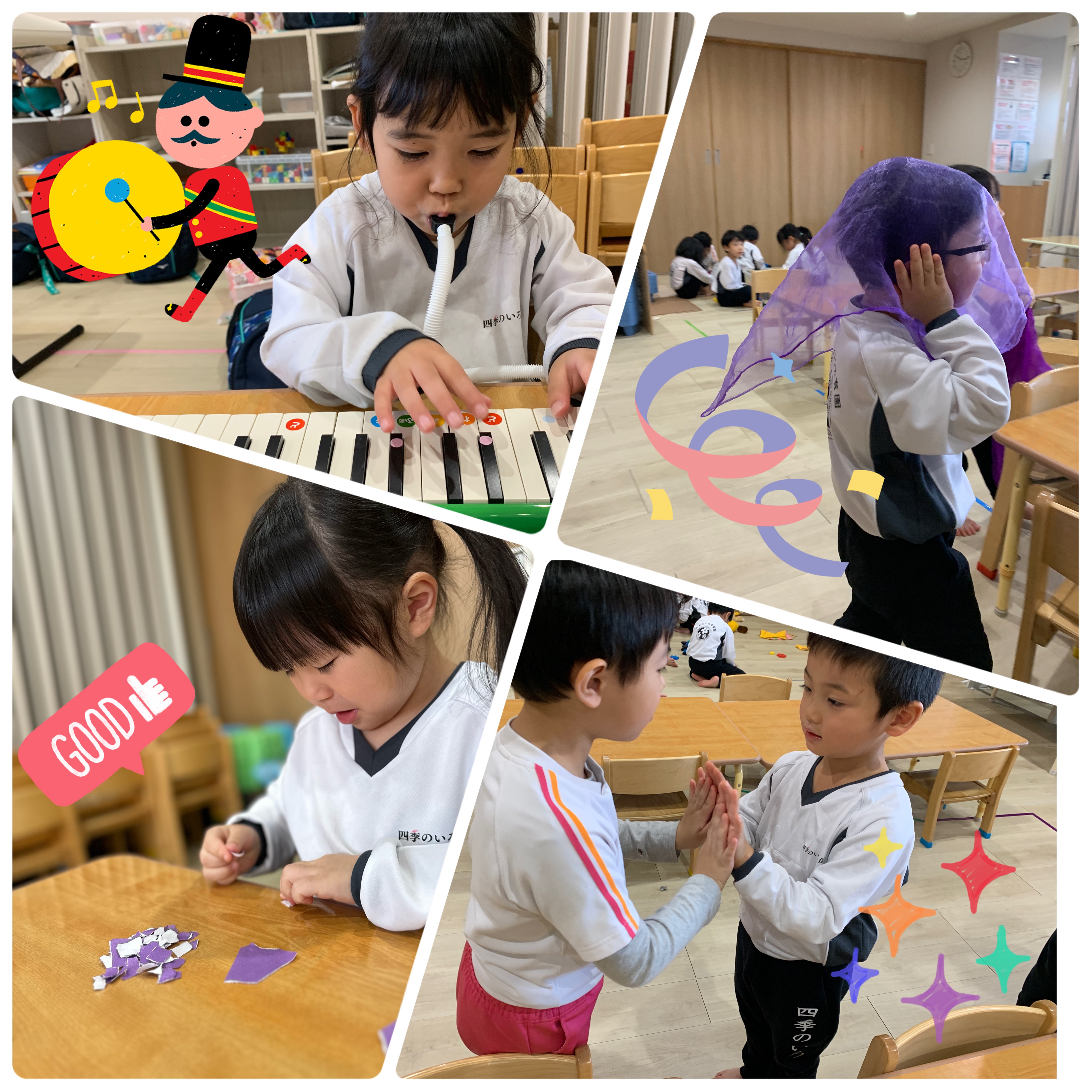 季節の歌をみんなで歌ったり、鍵盤ハーモニカを吹いたりして楽しく参加していました💕