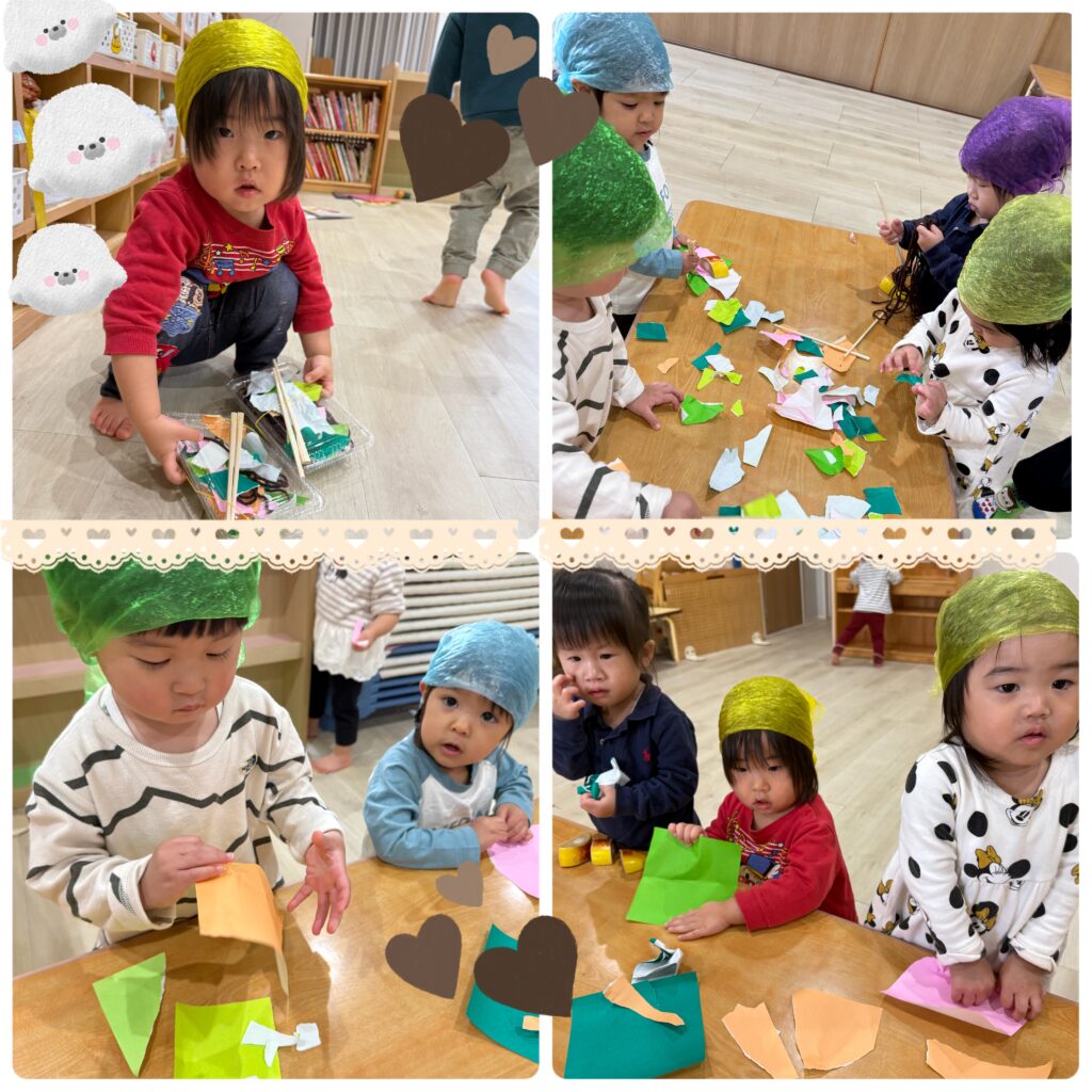 お野菜をちぎって麺を入れて、完成後は嬉しそうに園の中を回って焼きそばを見せびらかしておりました( ´艸`)