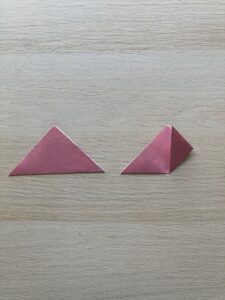 ①1枚は三角に折り、残り6枚は三角から片方の角を頂点に向かって折る