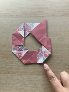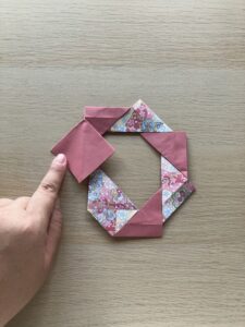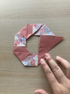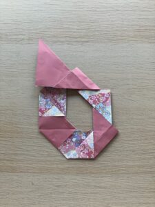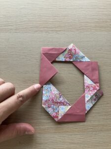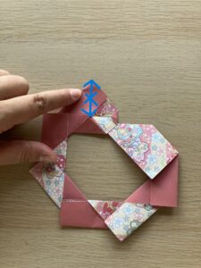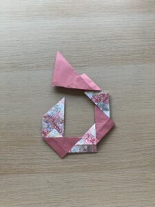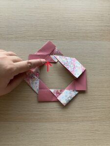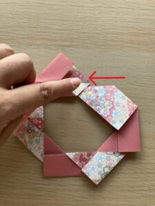 ⑫ 向きを変えて、出っ張っている角をぐるっと一周折っていきましょう