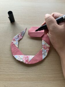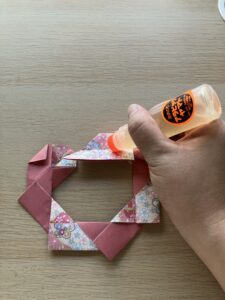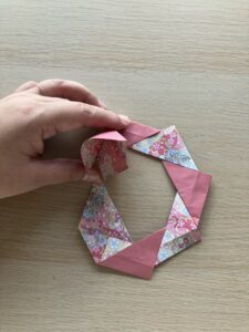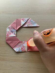 ③ 6枚目が繋がったら、三角ものりをつけてつなげます