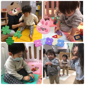 ひよこ・りす・ねずみ組のお友達は朝の会後に室内で遊びました。