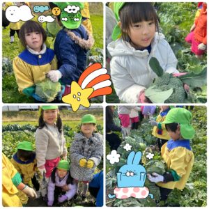 お芋堀りの後はブロッコリーとキャベツを収穫しました!