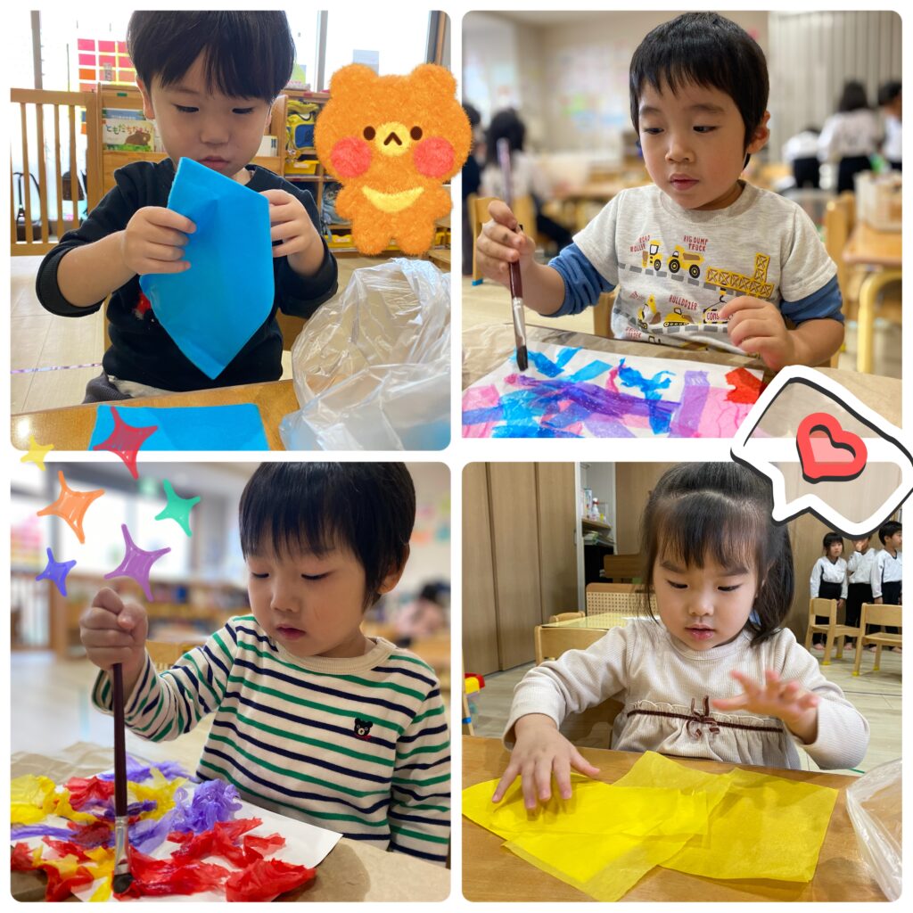 今日は制作をしました(^▽^)/花紙をビリビリとちぎって音を楽しんだり、