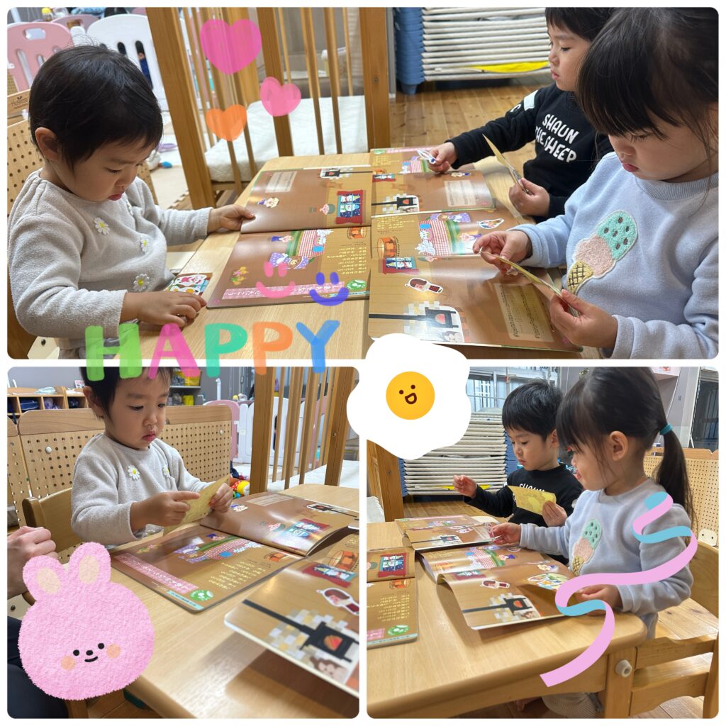 ひよこ組りす組ねずみ組さんはシール貼りをしました。