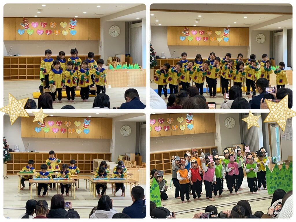 続いて以上児さんの第2部です✨✨歌や合奏、劇など普段とは違う雰囲気に少し固まってしまう子もいましたが、みんなの成長した姿をたくさん見る事が出来ました☺️