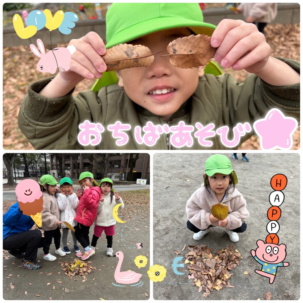 今日はお友達と一緒に落ち葉遊びを楽しみました✨