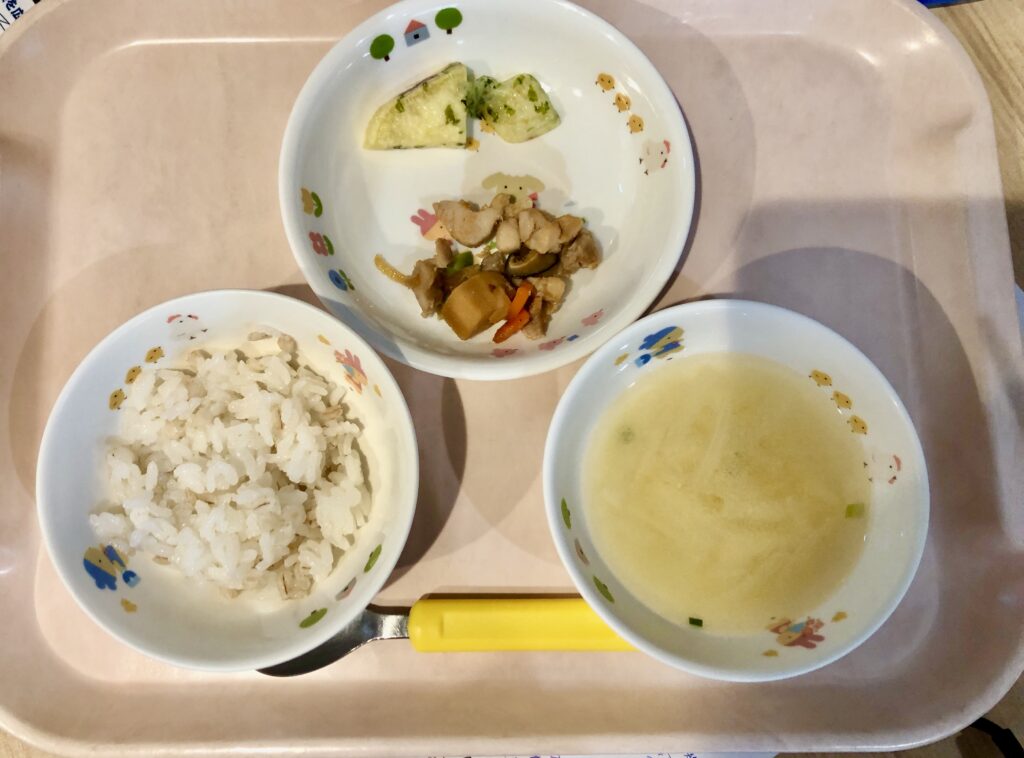 麦ご飯、みそ汁、高野豆腐のうま煮、磯辺さつまいも
