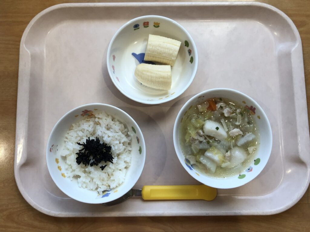 ・麦ご飯 ・ひじきの佃煮 ・鍋 ・バナナ