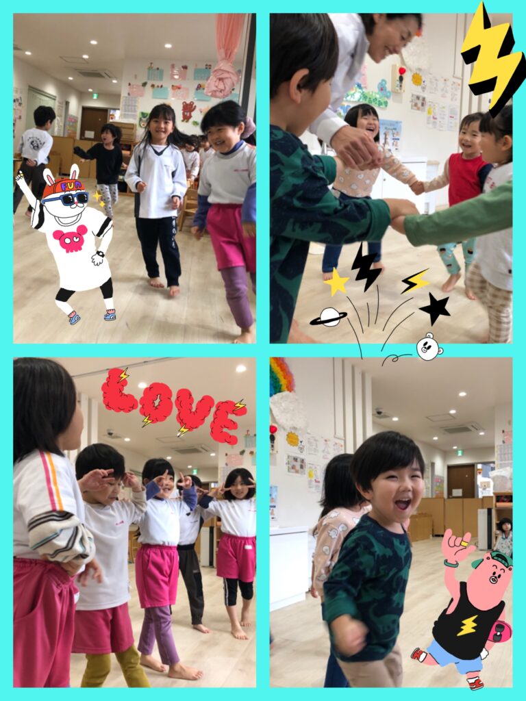 音楽に合わせてからだを動かしたり、みんなで輪になって楽しんでいました(^^♪