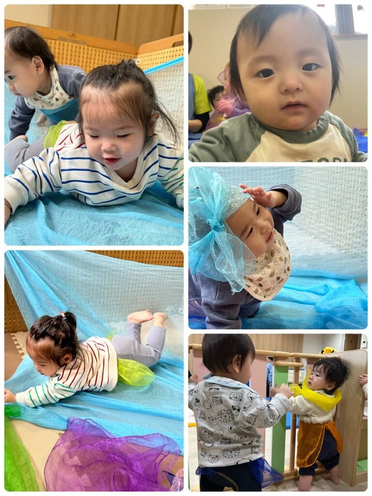 ほし組さんはマットでたくさん体を動かして遊んだようです!!♬ 時々おひさま組さんに混ざってスカーフでも遊んでましたよ!!