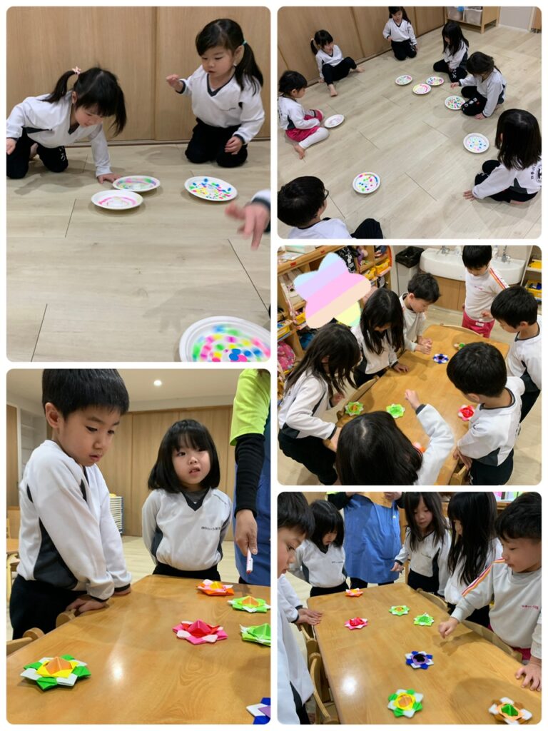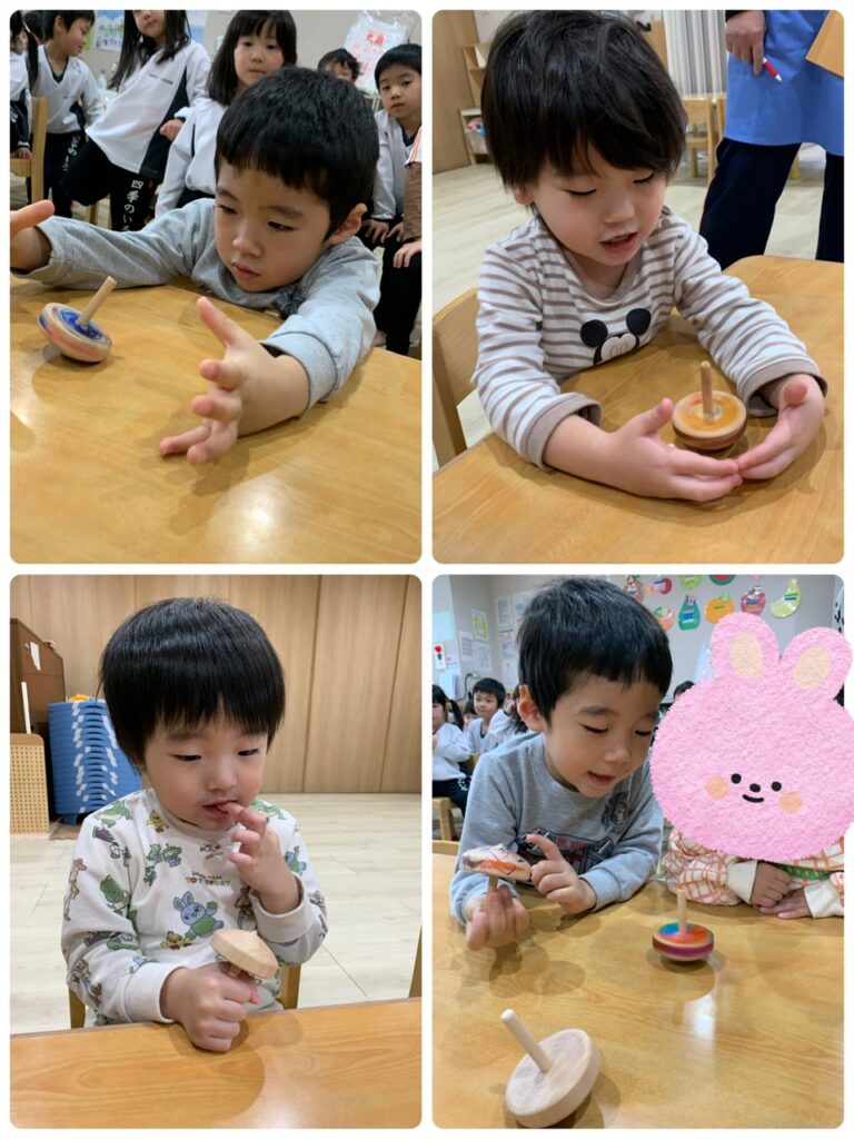 つき、あおぞら、にじ、ひかり組さんはコマ回し大会が行われていました!!