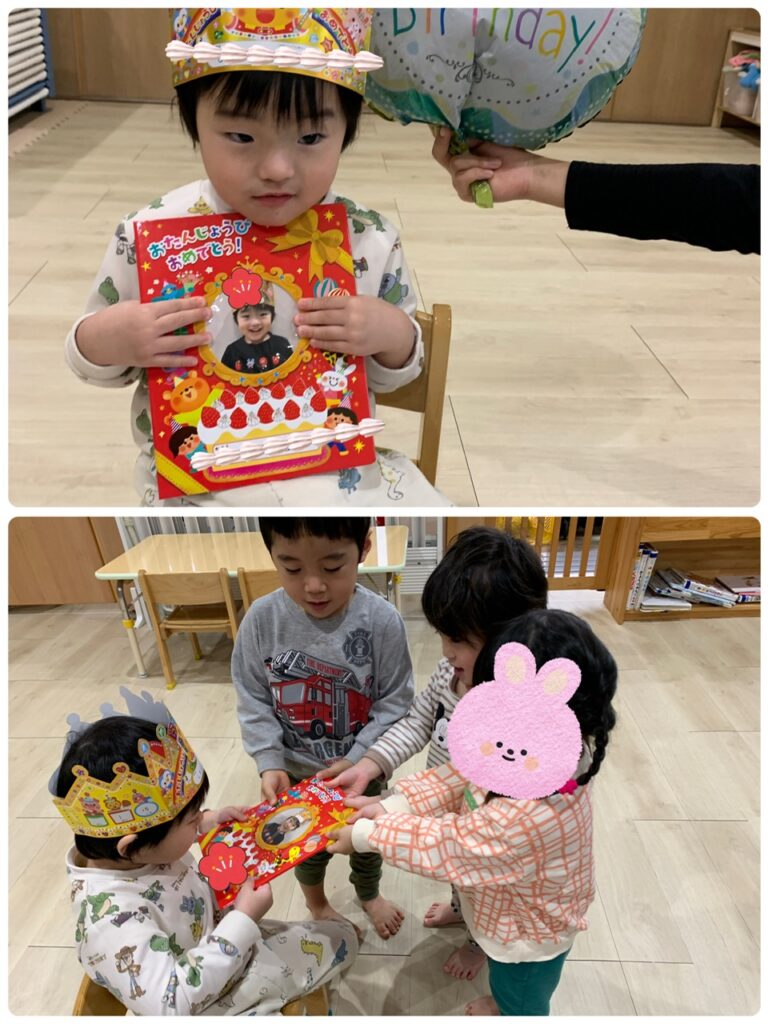 先日お誕生日だったお友達の誕生日会もありました!みんなに祝ってもらえて、ちょっと緊張してたけど、嬉しそうでしたよ!