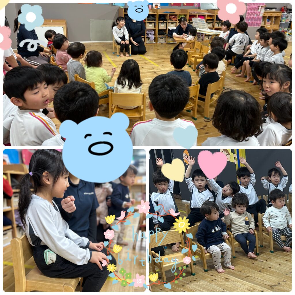 誕生日のお友だちはみんなの前に座って、お誕生日おめでとう!と祝ってもらいました😊