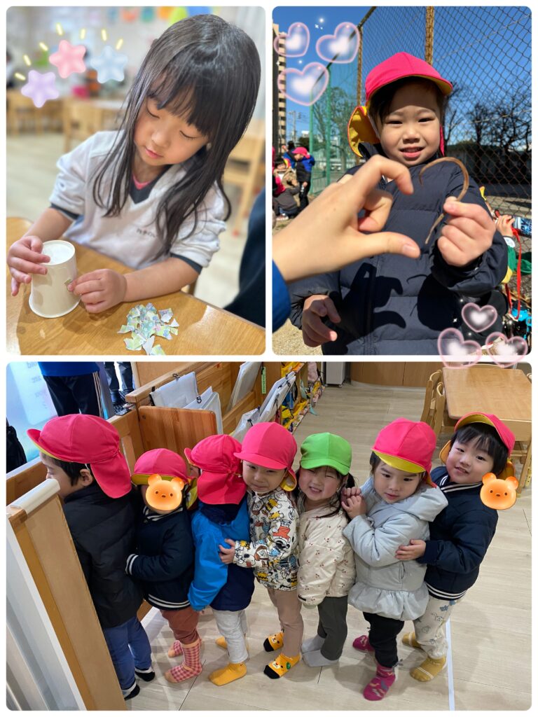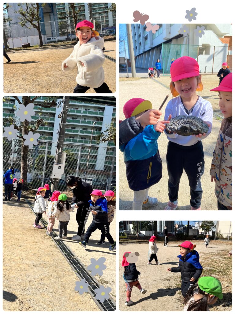 木のかぶや、珍しい形の枝木などをみつけて先生に見せてくれました♡