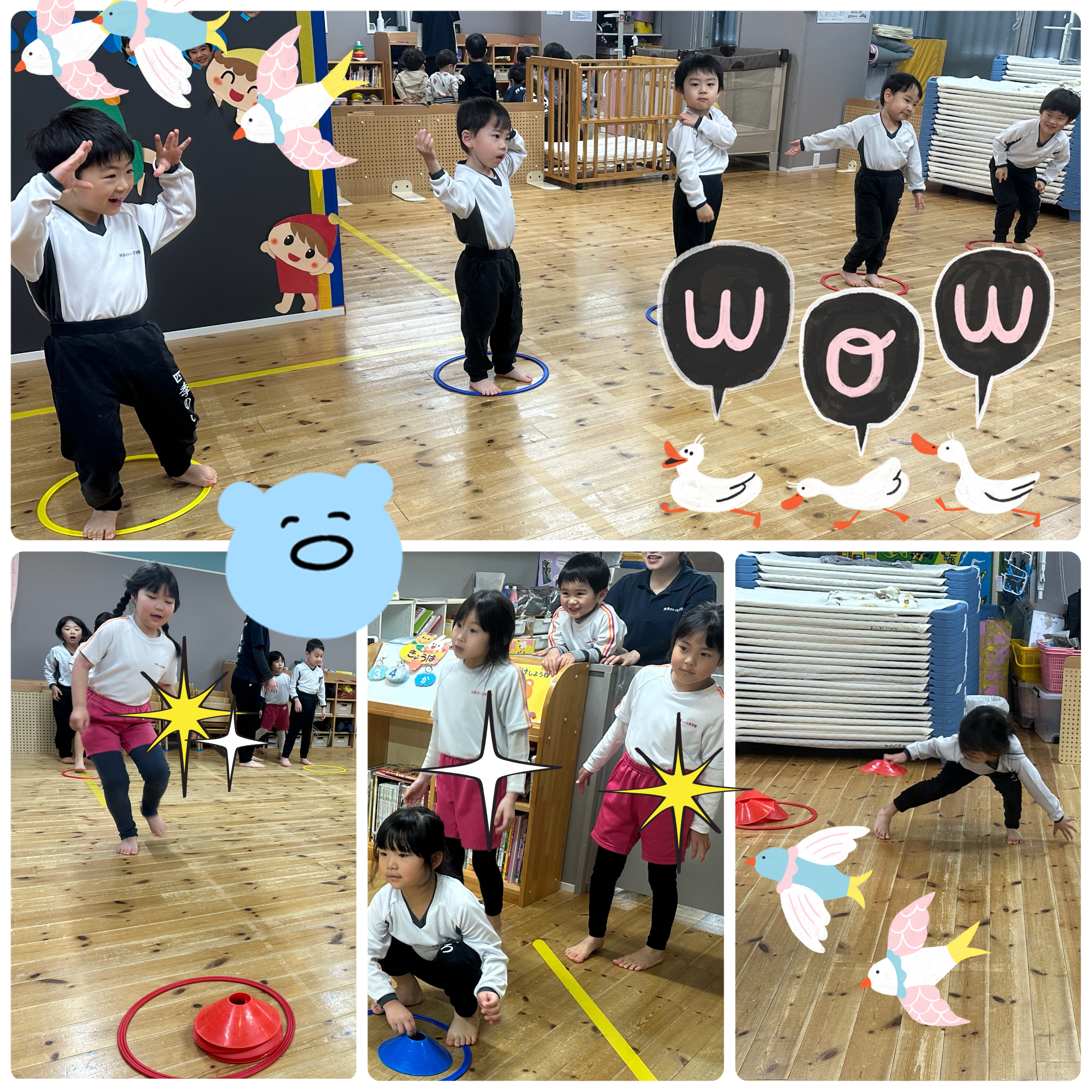 うさぎ組、ぱんだ組、ぞう組さんは園内でコーディネーション運動を行いました🌟