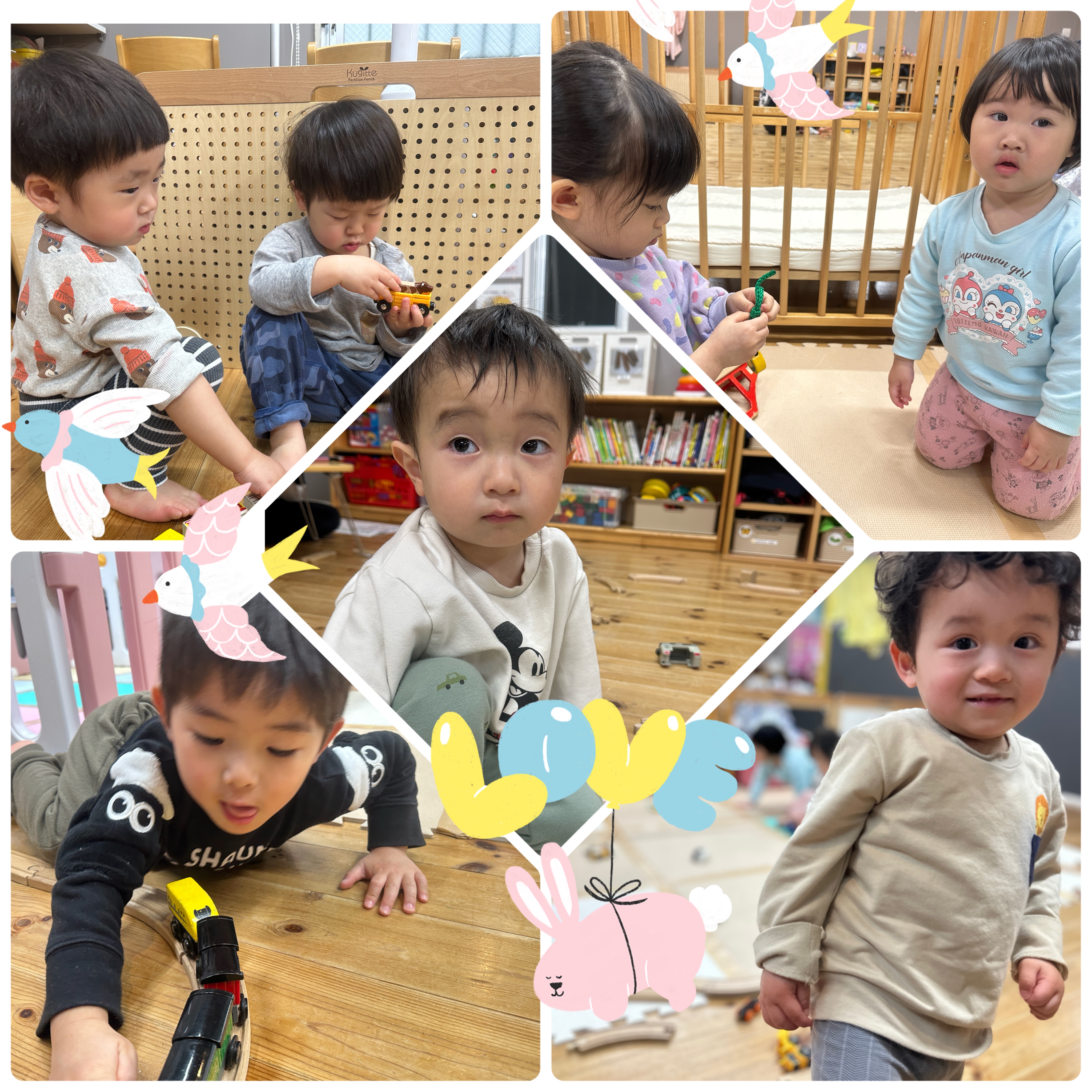 ひよこ組、りす組、ねずみ組さんは電車遊びをしました。