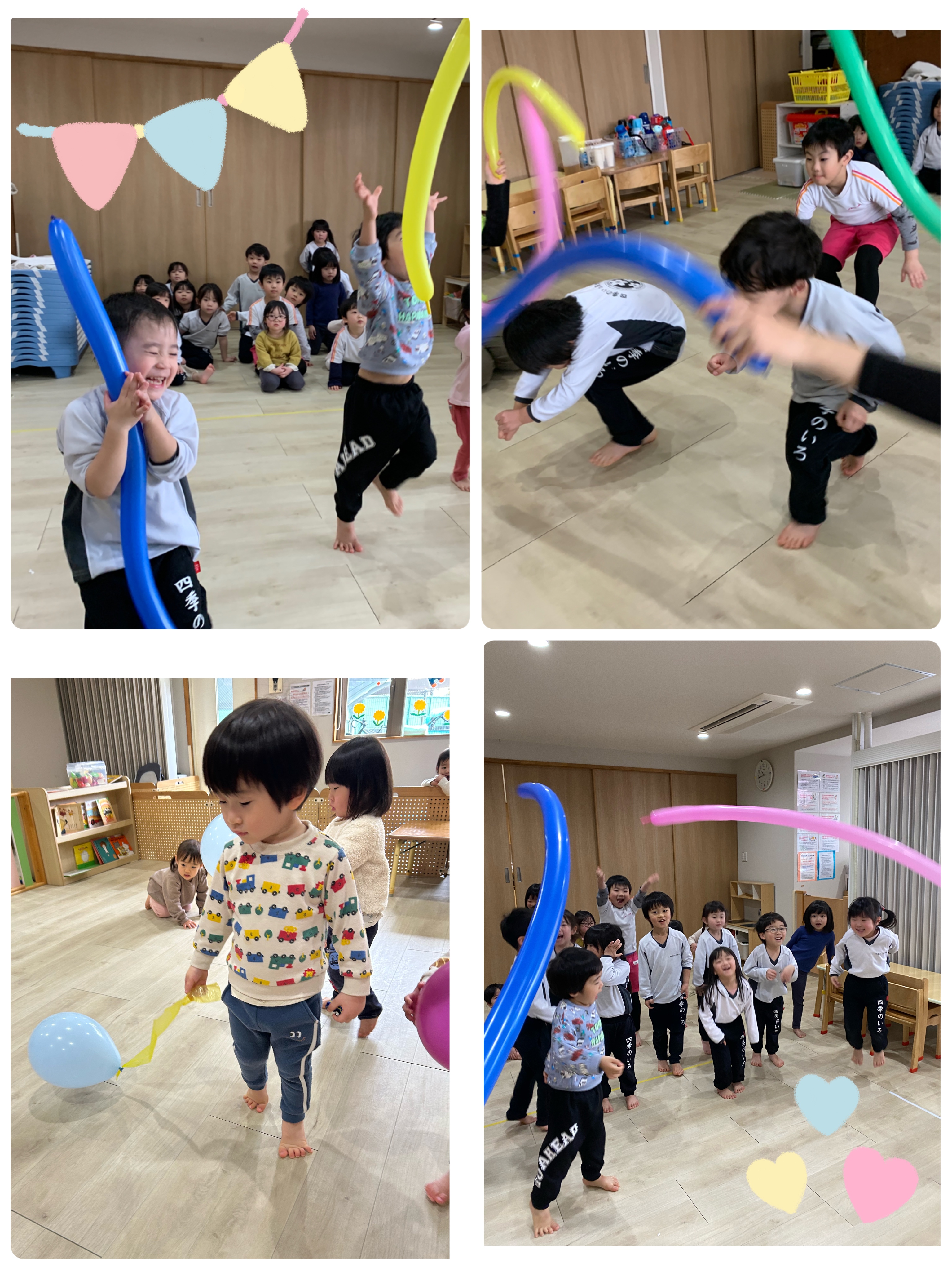 子どもたちは大盛り上がりでしたよ👏✨お家でも風船遊びしてみてくださいね😊💕