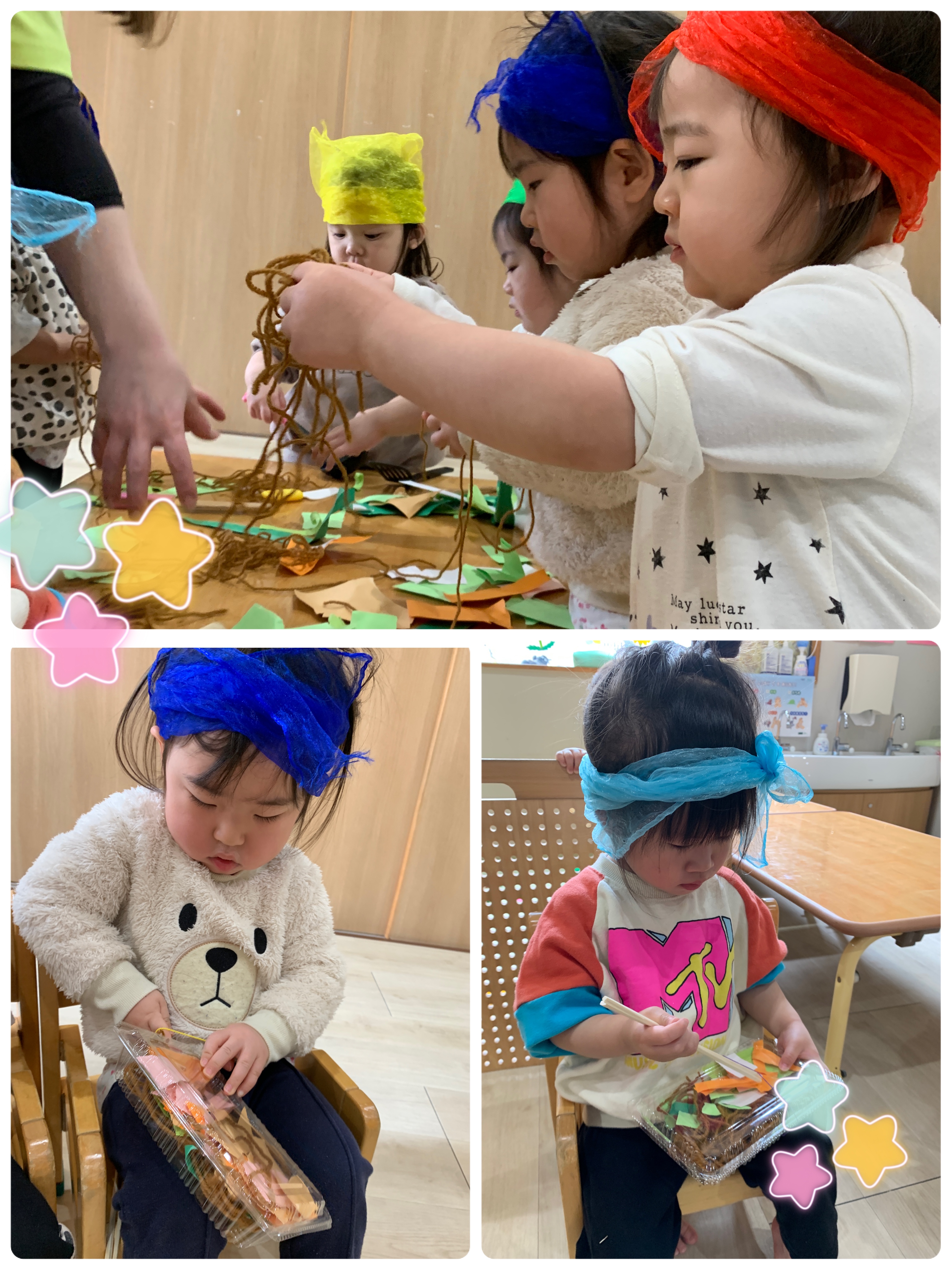 小さいクラスのお友達はごっこ遊びをしました🌟本物そっくりの焼きそばを作ったり、食べたりして楽しんでいましたよ💕