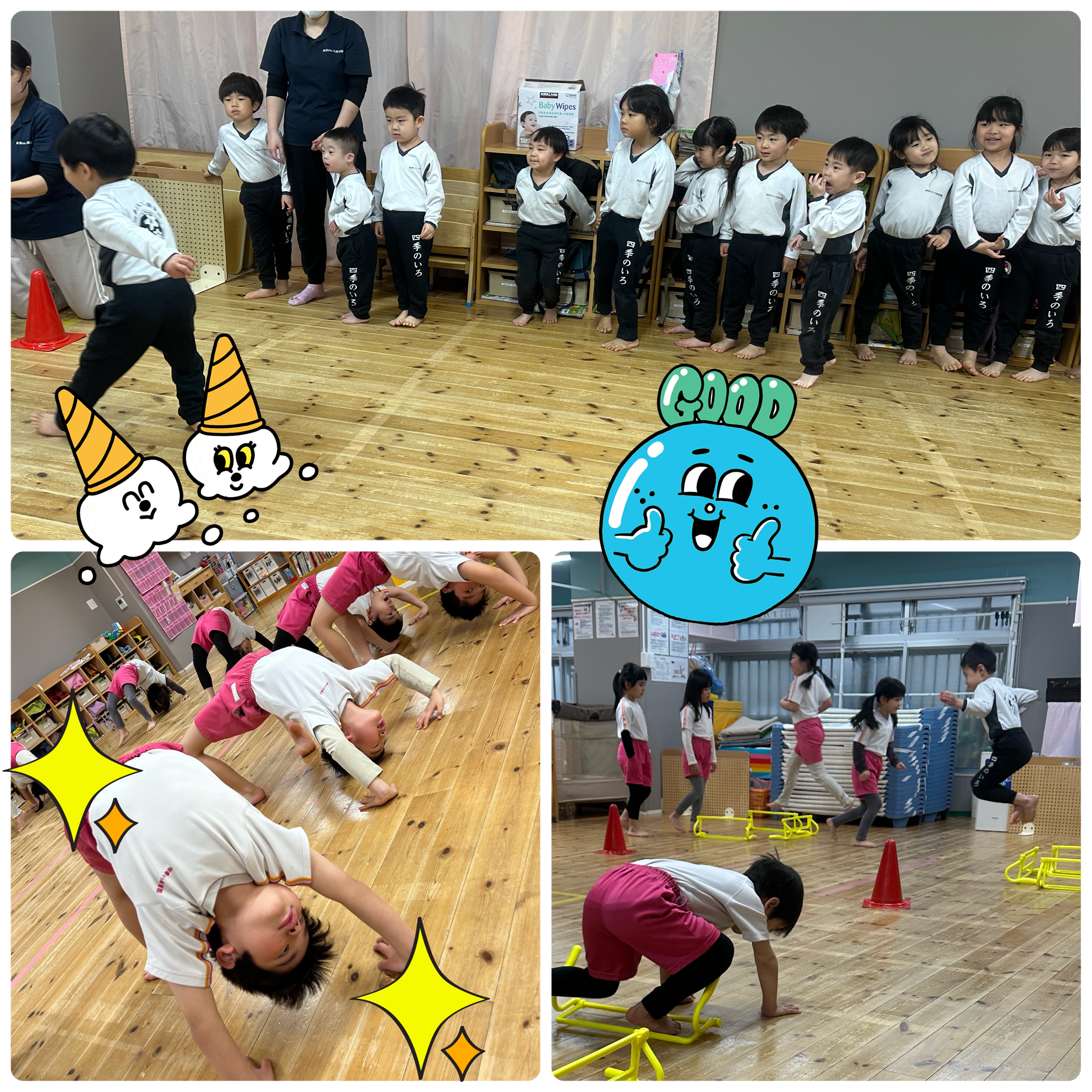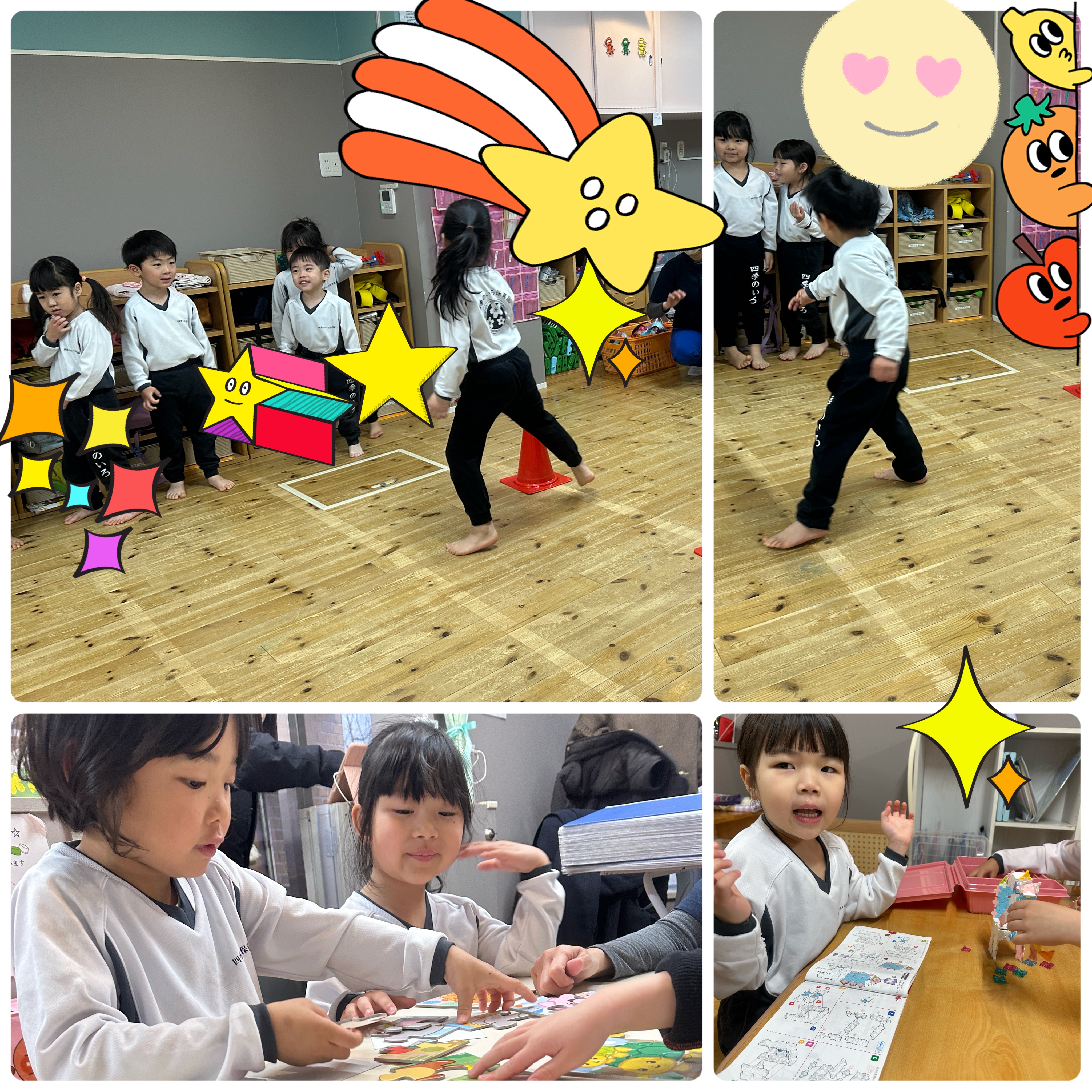 お外は雨だったので、園内でたくさん動きましたよ😊