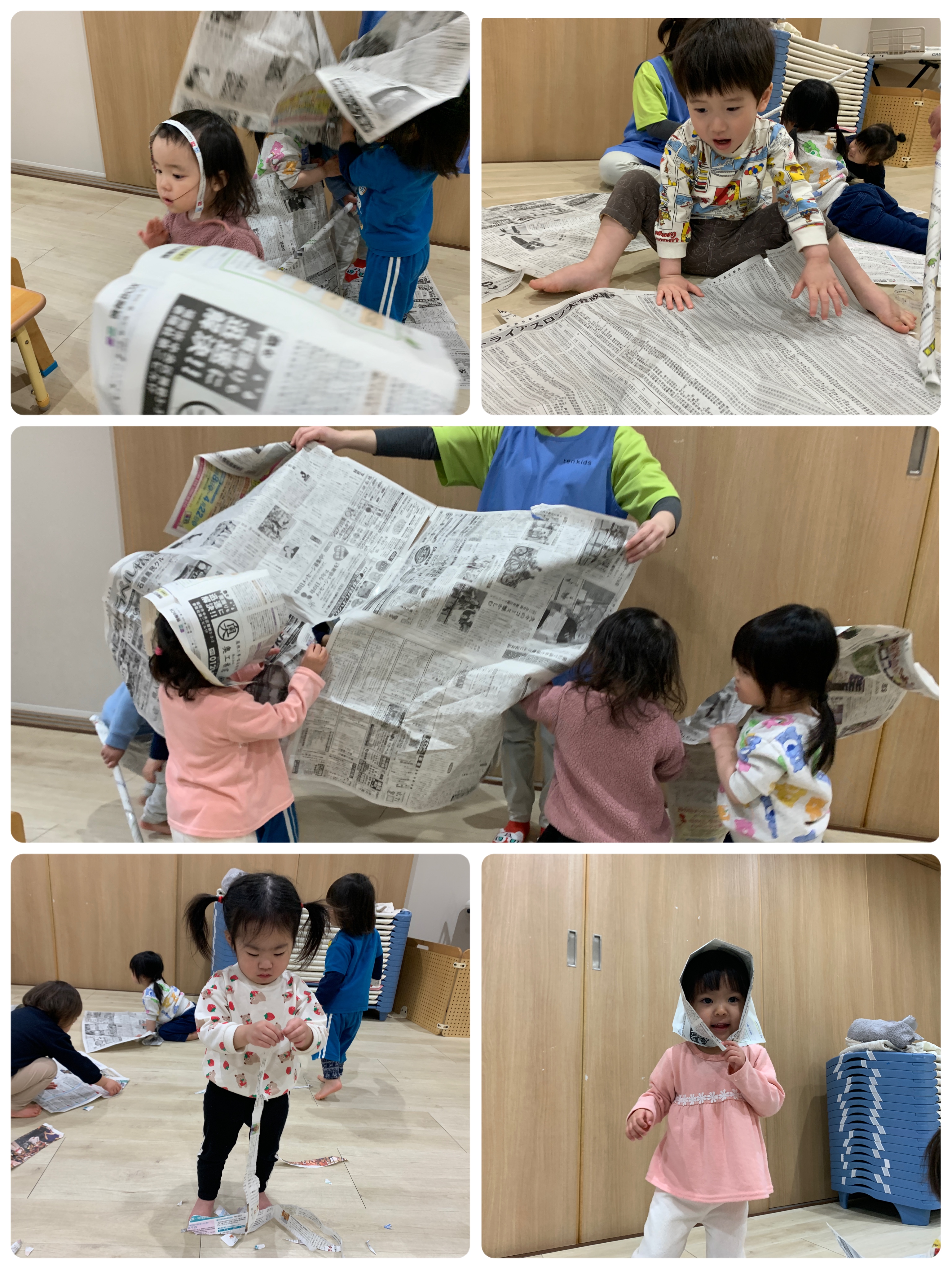 小さいお友達は大好きな新聞紙遊びをして大満足★