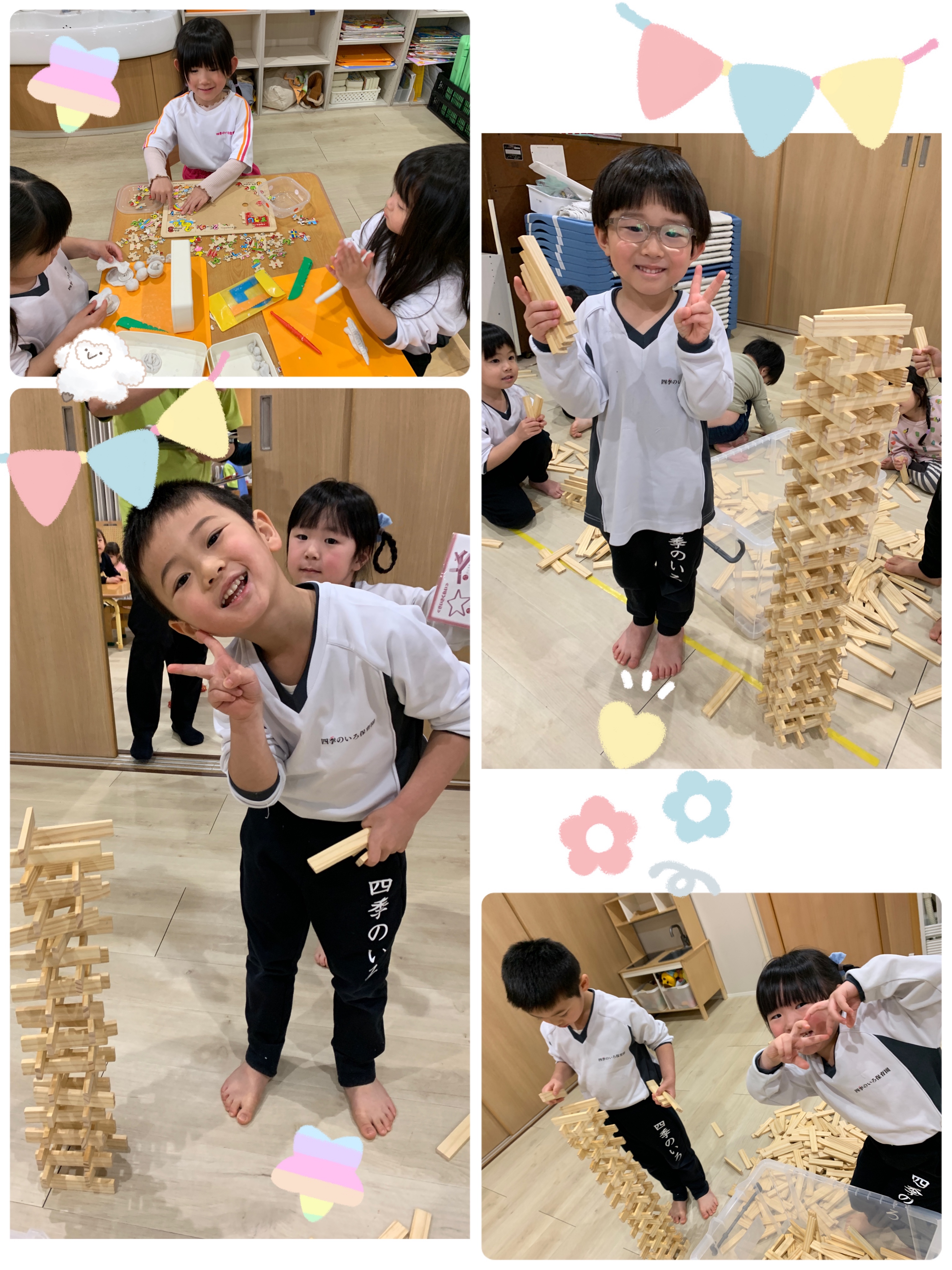 大きいお友達はスティッピーを高く積み上げてきょうも超大作を作り上げていました。