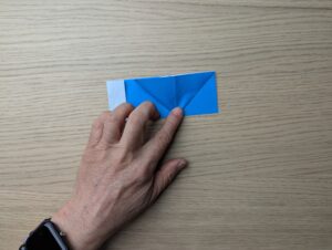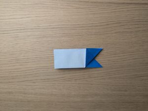 3・折った白い部分を左横に向けて下を三分の一折ります