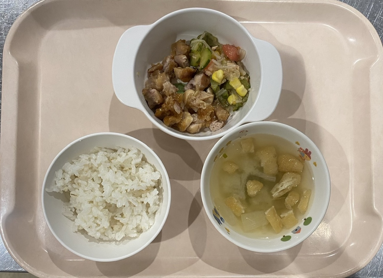 今日は子どもたちの大好きな唐揚げでした♡「おかわりください!」の声がたくさん聞こえてきましたよ♬