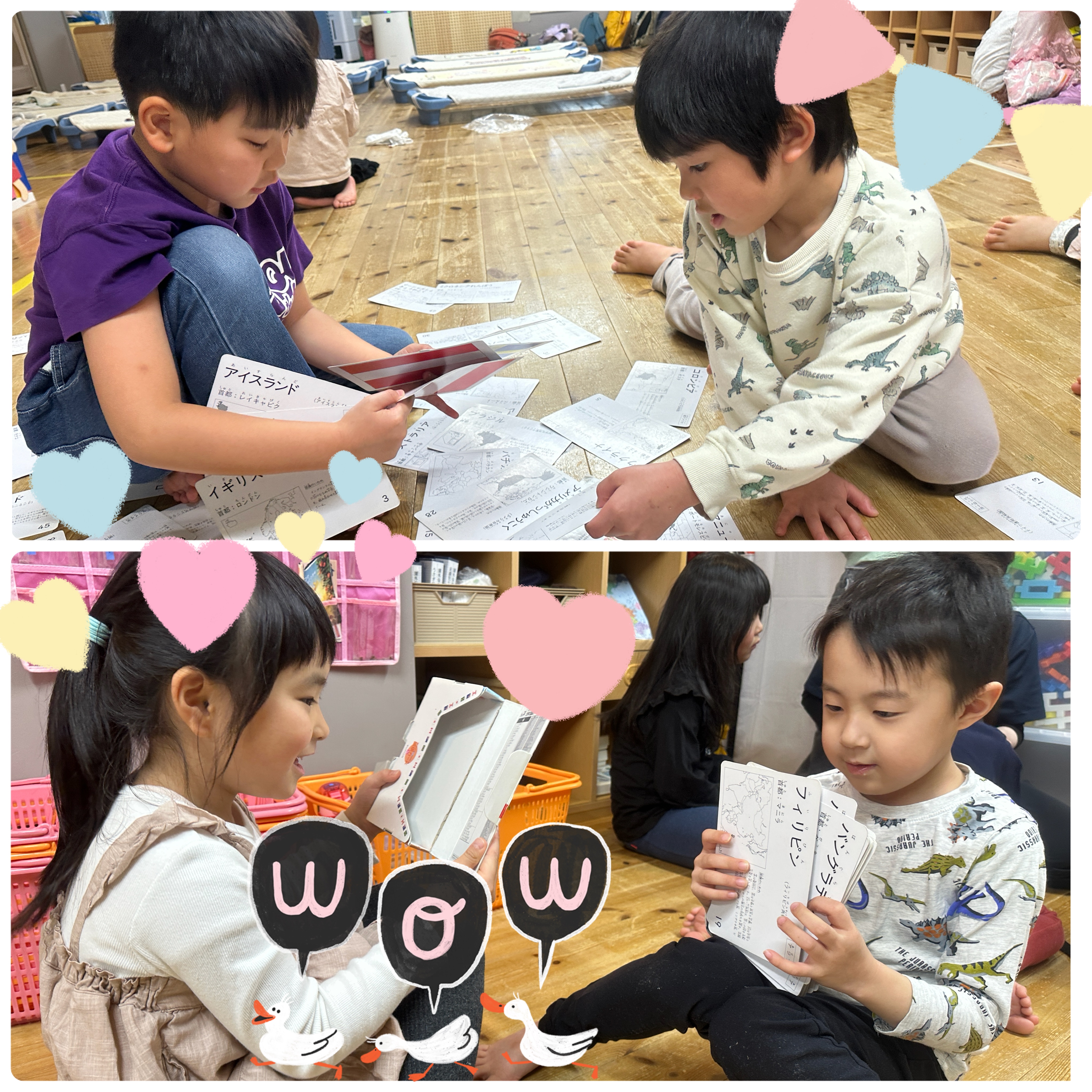 これは何でしょう?〇〇!とたくさんの国の名前をあてっこしました!