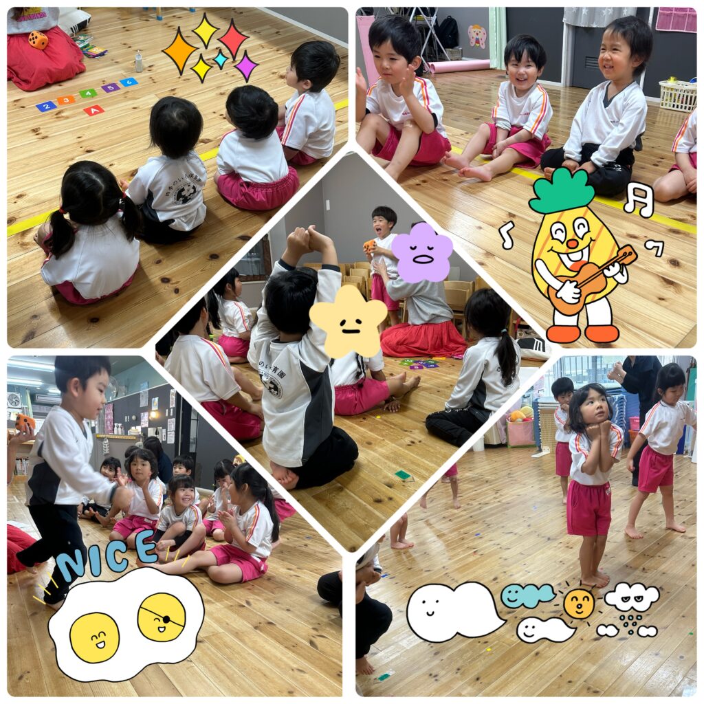 うさぎ・ぱんだ・ぞう組さんは英語教室がありました。