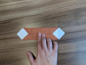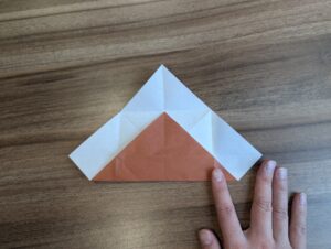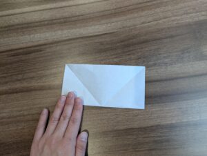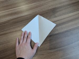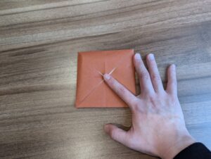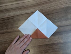 7・開いて下角の頂点を中心点に向かって折ります