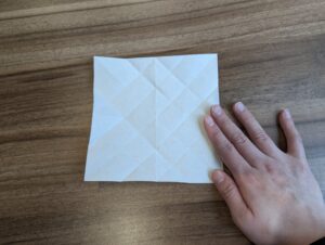 8・写真のように全ての頂点を中心点に向かって折ります折ります