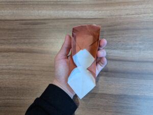 5・.ひっくり返して横に四角に折ります