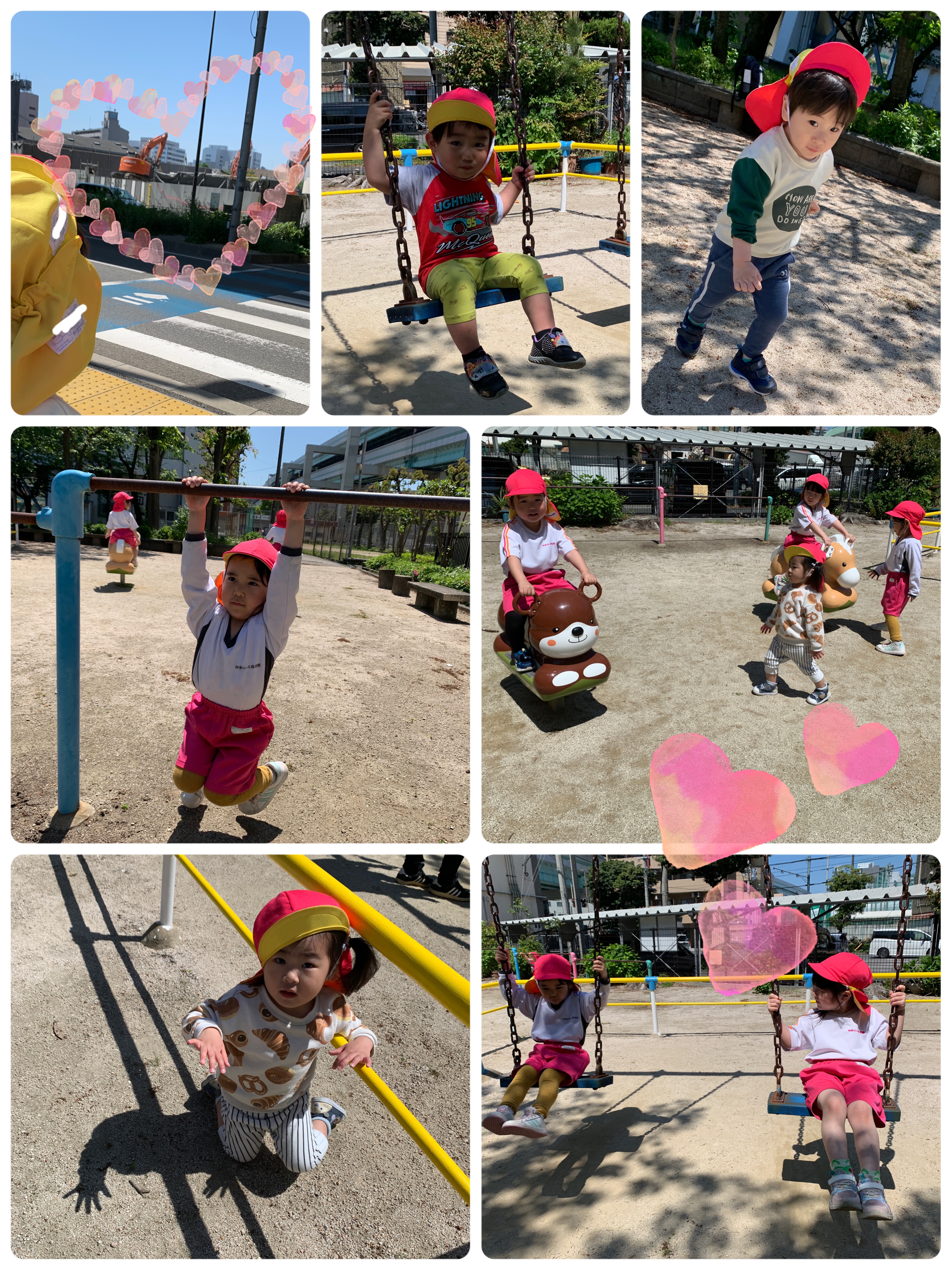 お外遊びでは、みんなの大好きなショベルカーを見ることが出来て大喜び!公園でも元気いっぱい遊びました!